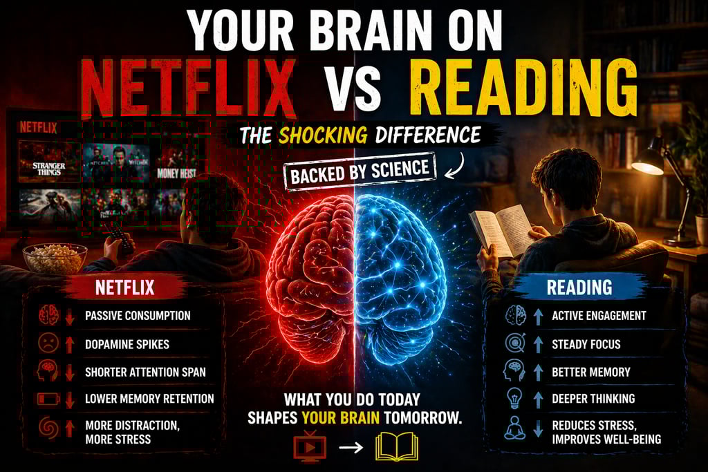 Discover how Netflix and reading affect your brain differently. Learn which habit improves focus, memory, and long-term mental health.